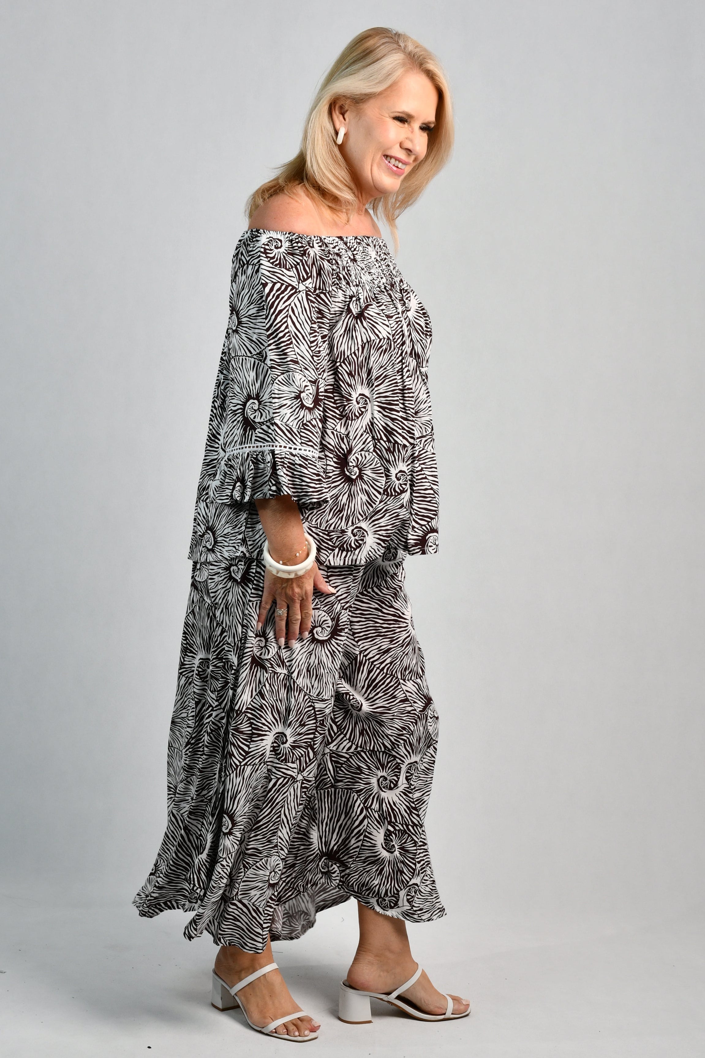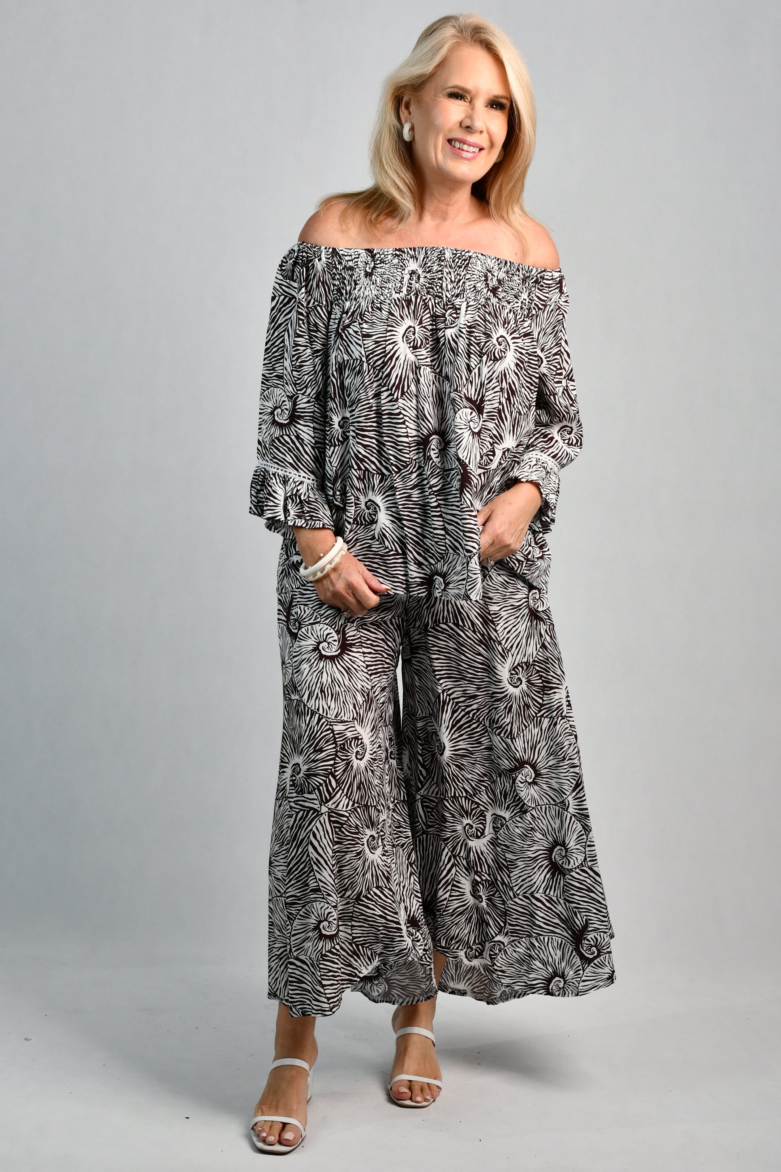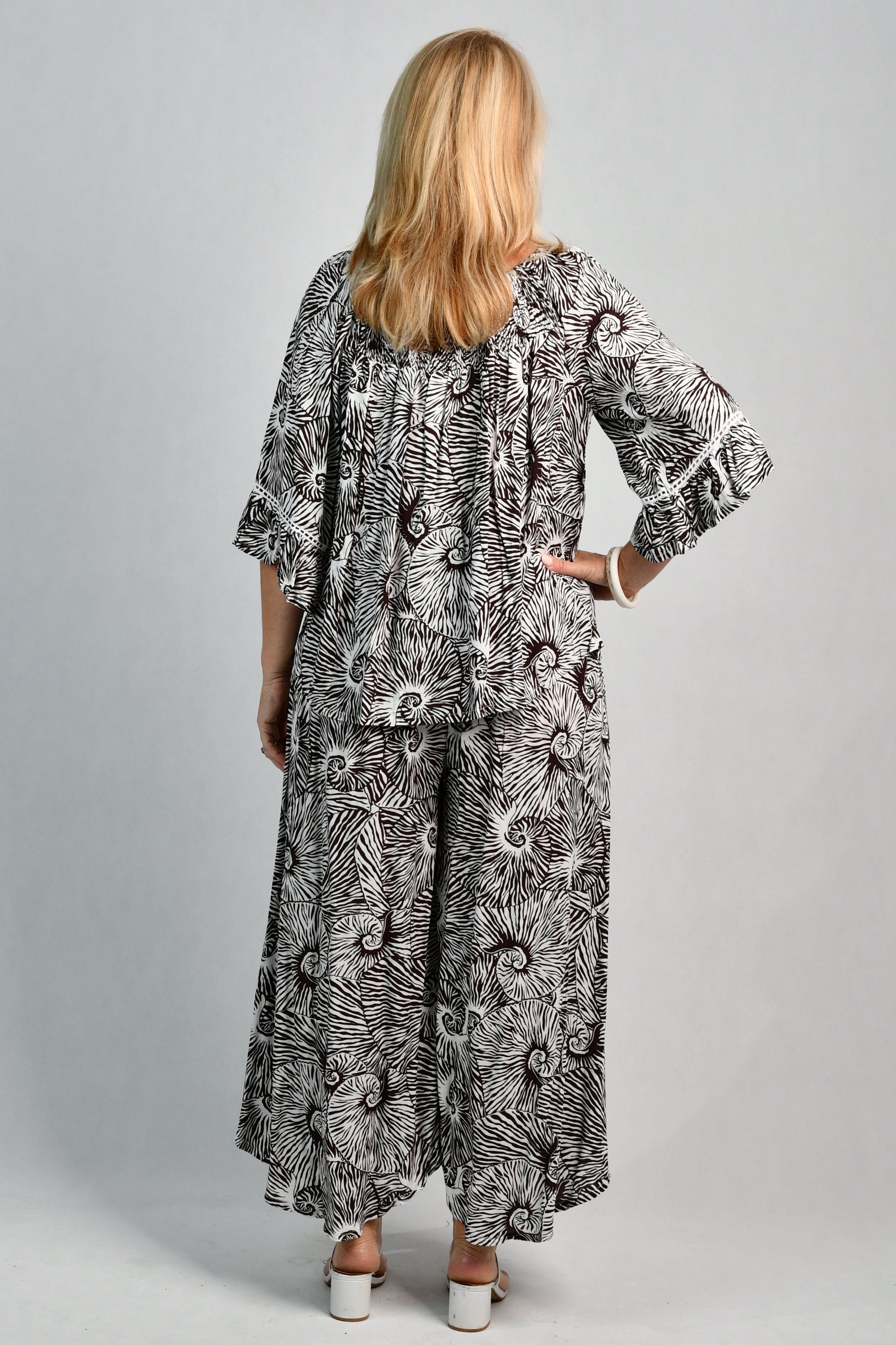 VBLP106 - SYDNEY WIDE LEG PANT - SHELL SWIRL BROWN