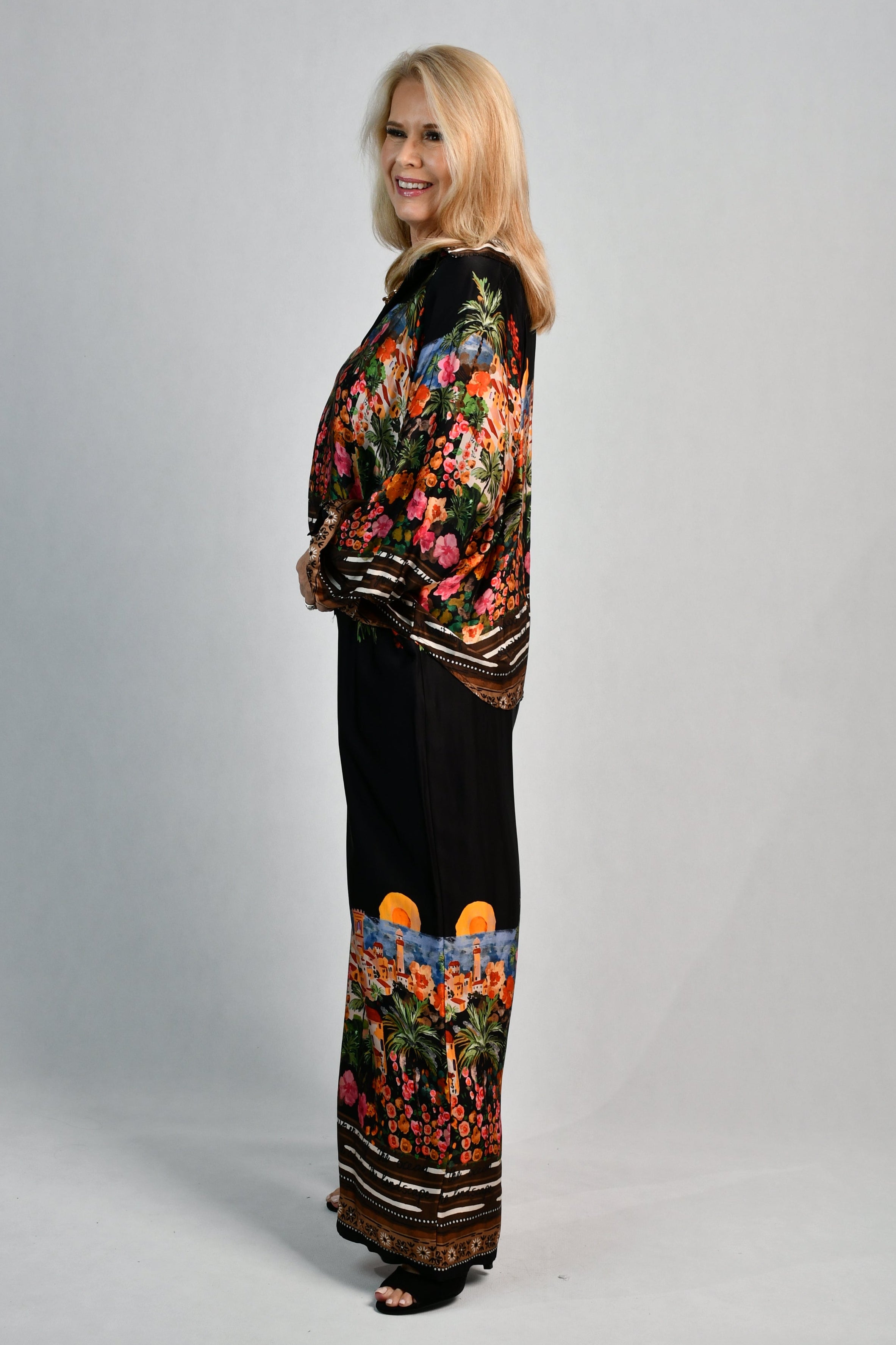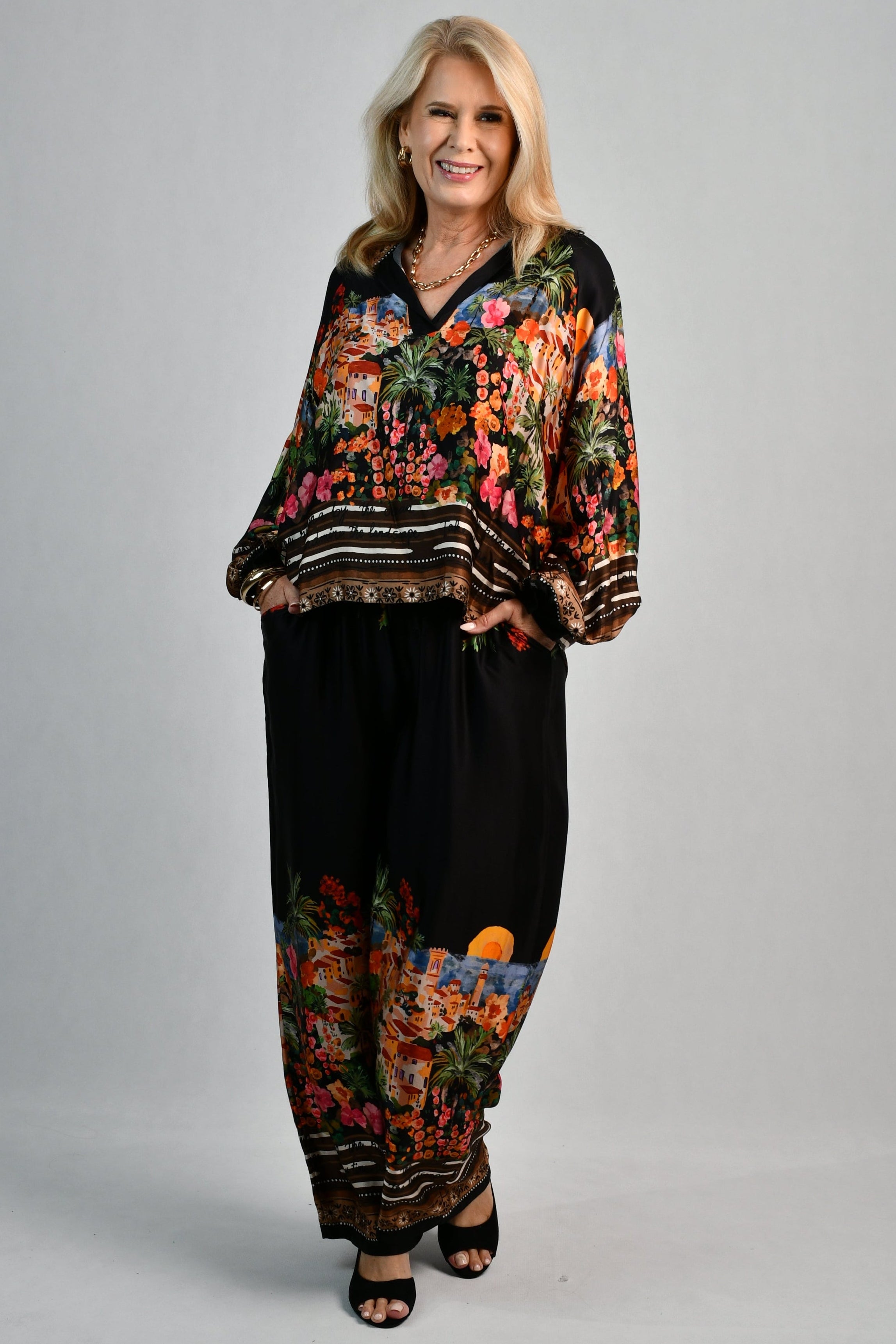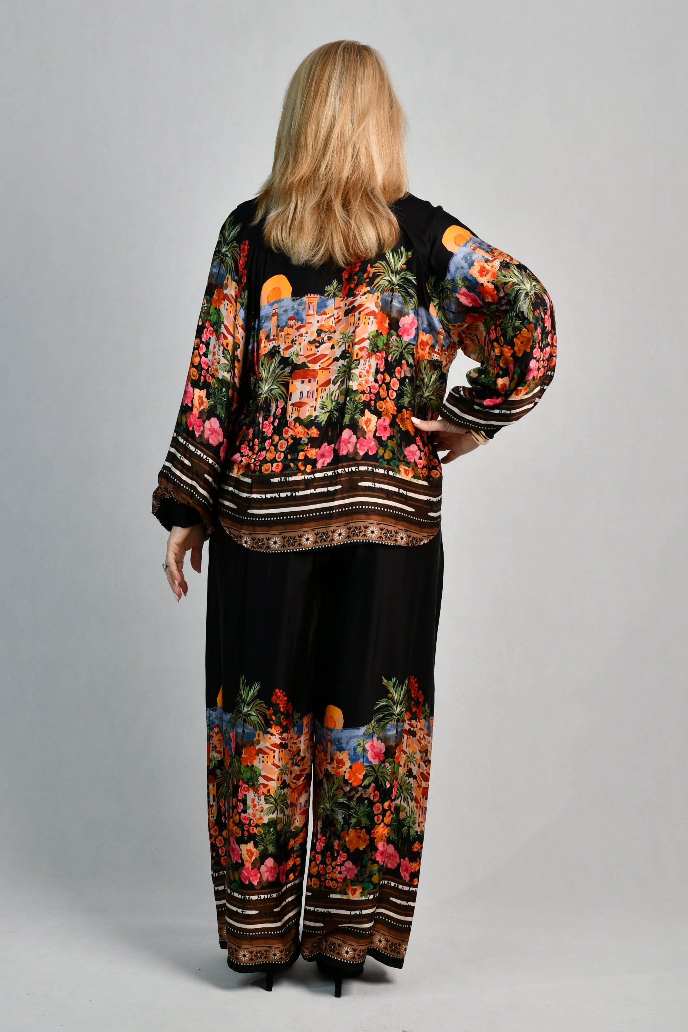 Made from dreamy Italian silk with a beautiful Riviera print, these luxurious pants are both comfy & uber stylish. Perfect for elevated resort wear or cruises, you can mix & match with your existing tops or pair back with our matching madam silk top for the ultimate put together outfit