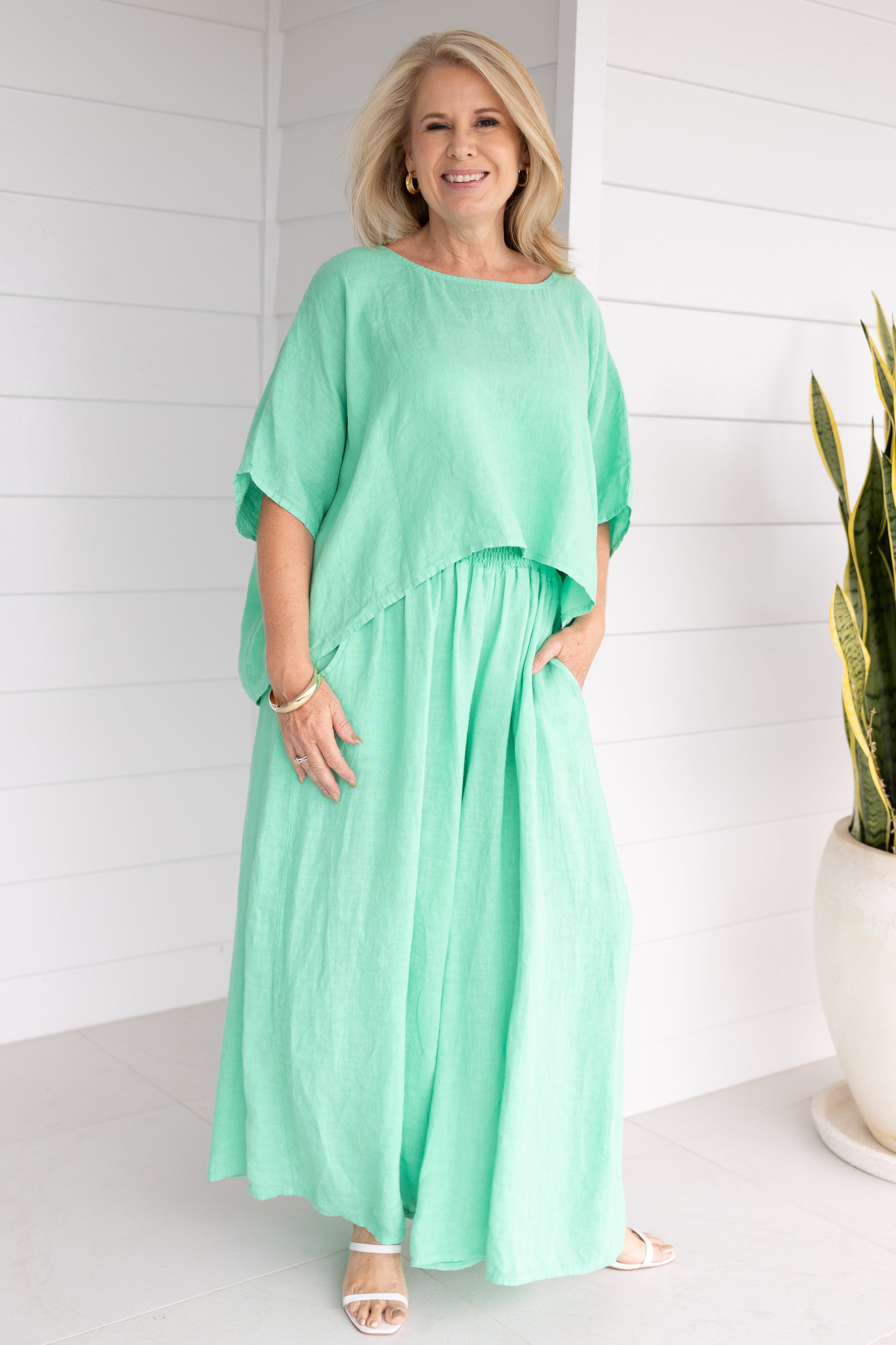 The Amalfi Top is made from 100% linen with a relaxed, draped fit. It's light & breathable & the kind of piece you’ll want on high-rotation through the warmer months.