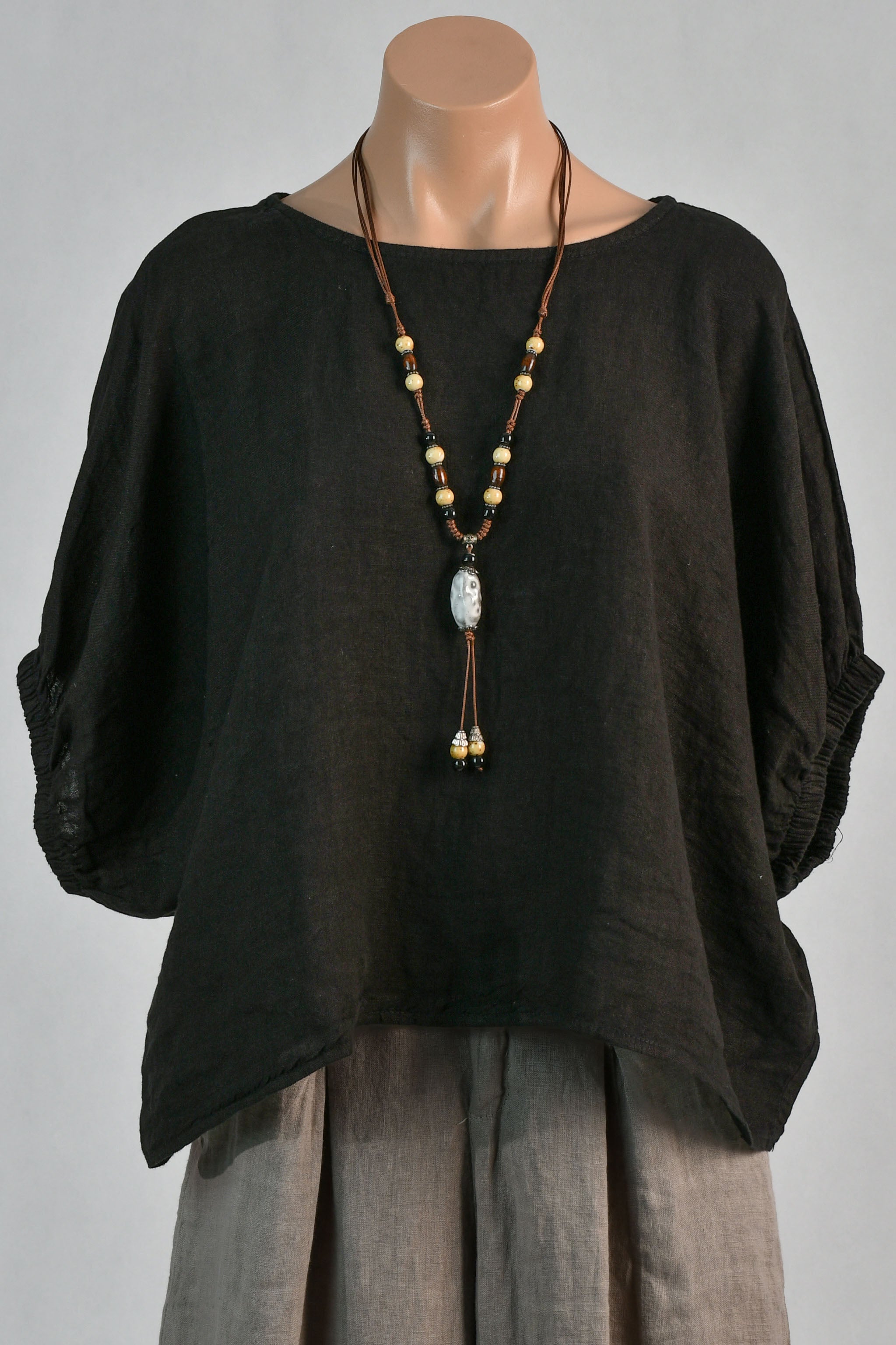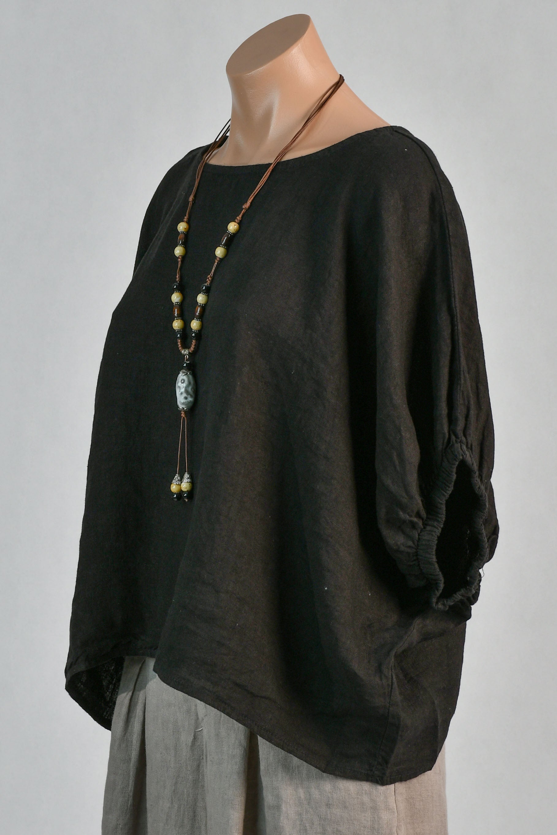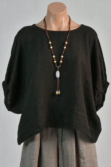 VLST370 (13141) - MARTINA LINEN TOP - BLACK