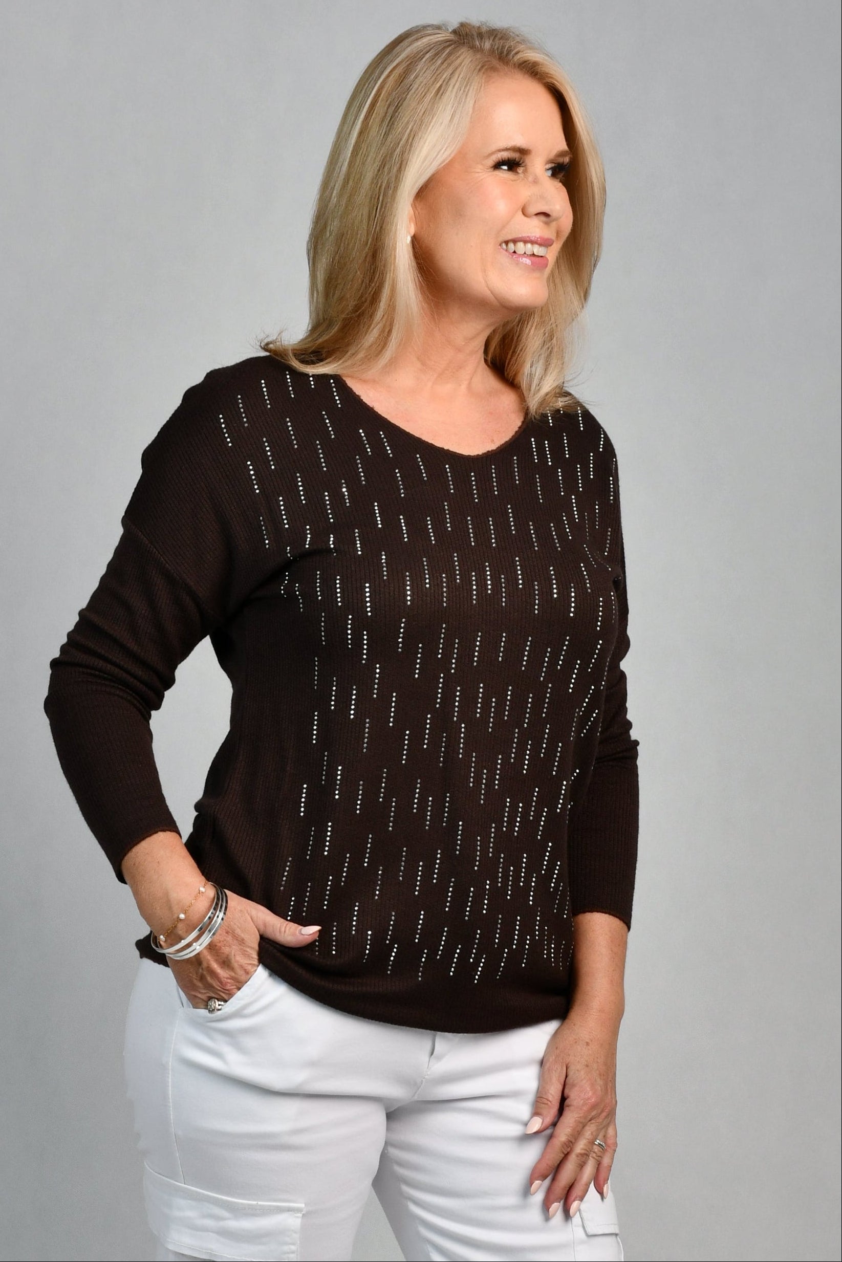 VLST516 (82582) - CLARA WOOL TOP - CHOCOLATE DIAMANTE