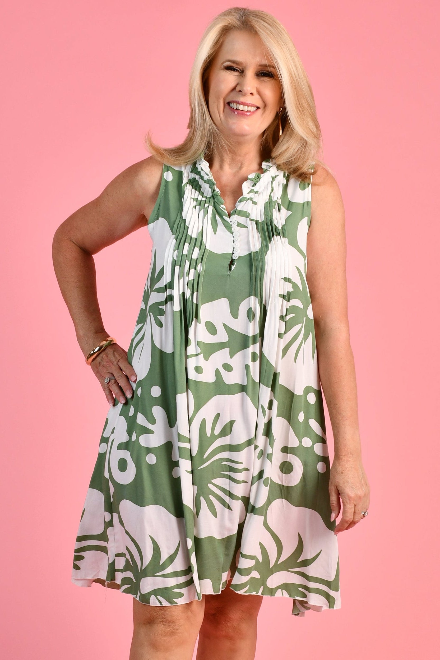 VBLD966 - LOMBOK DRESS - KHAKI HIBISCUS