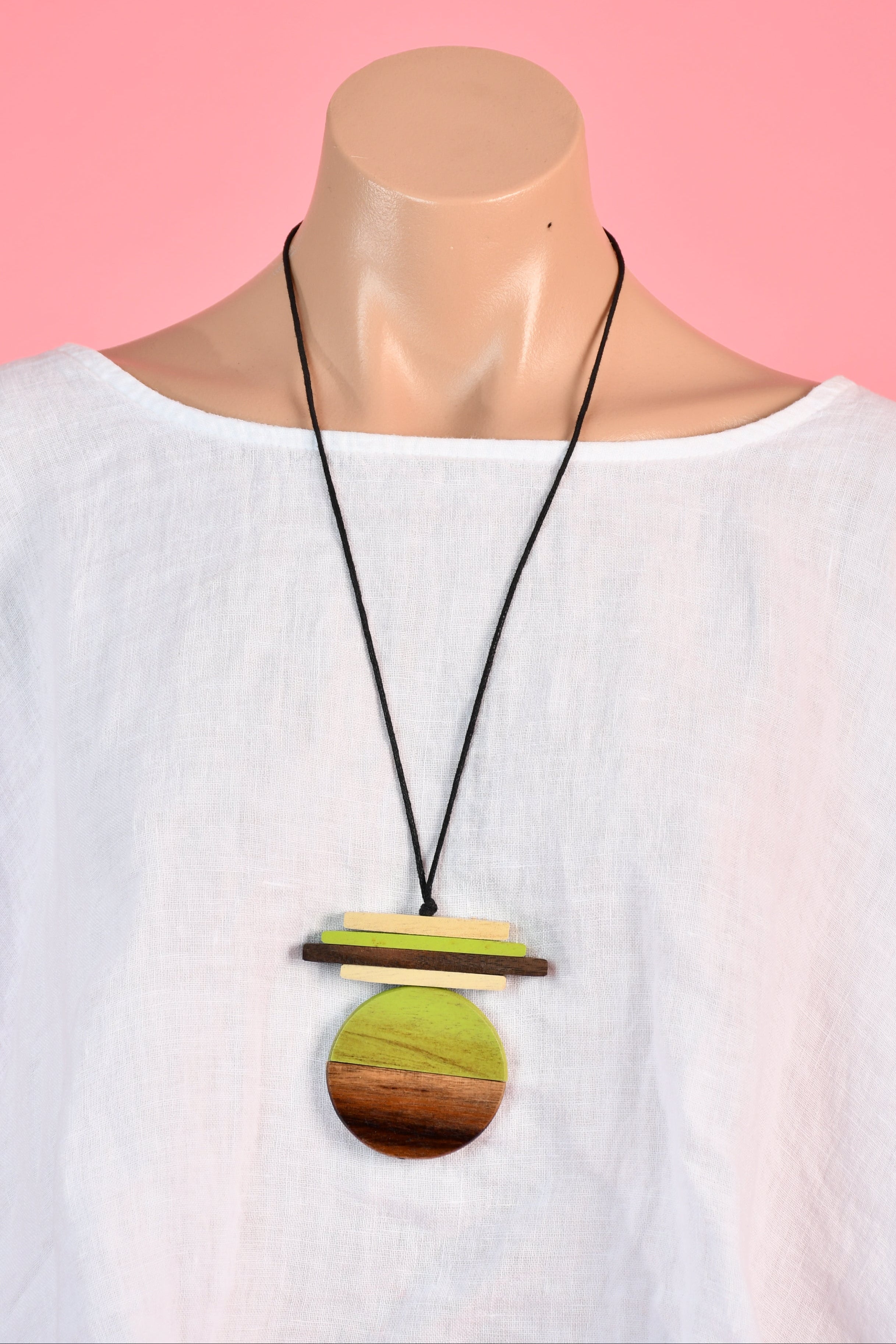 VGA111 - LONG WOODEN 2 TONE NECKLACE - GREEN
