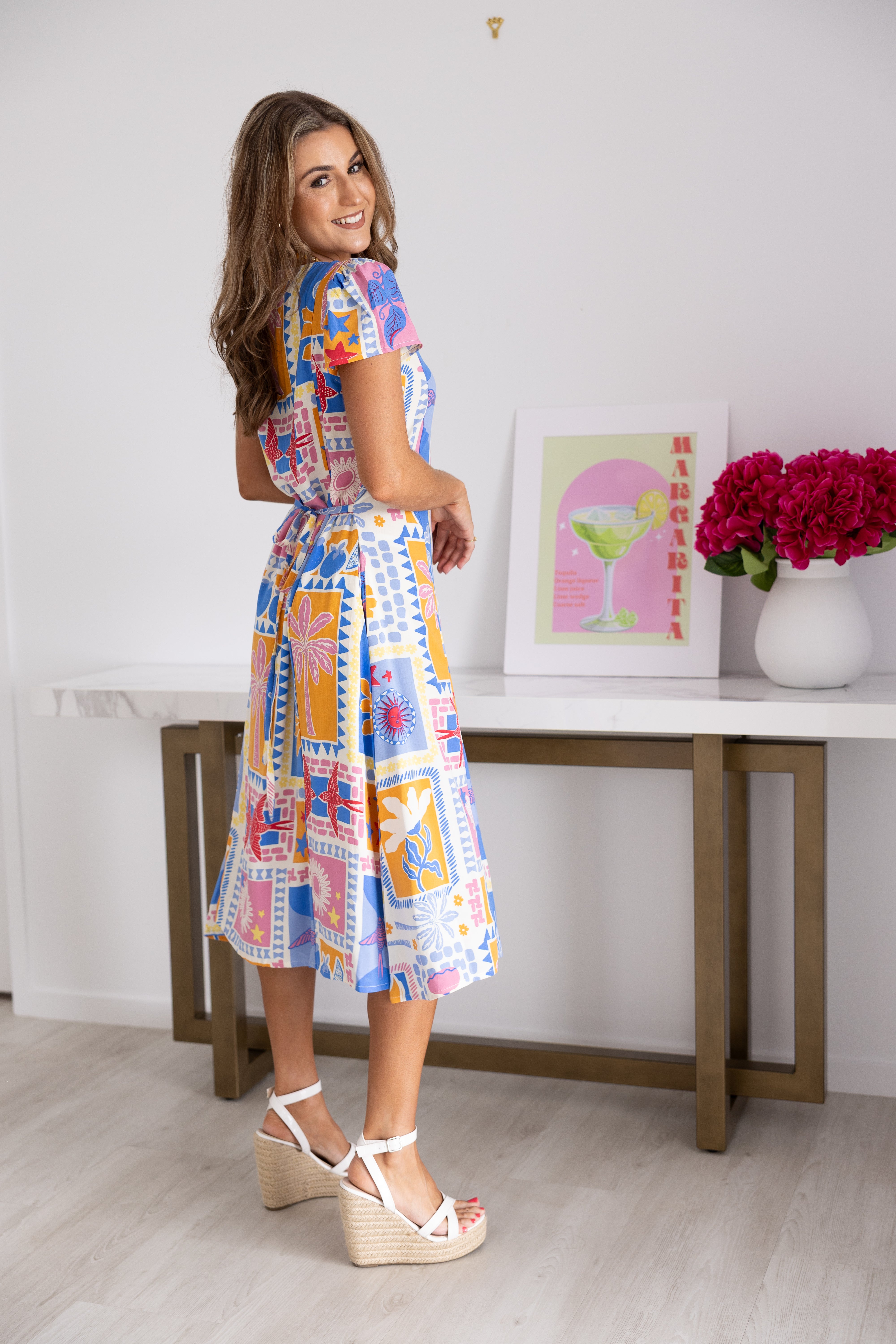 Meet our drop dead gorgeous Rosetta Button Dress in Coastal Pop!