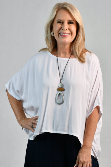 VGA888 - LONG WOODEN TEARDROP NECKLACE - SILVER/NATURAL