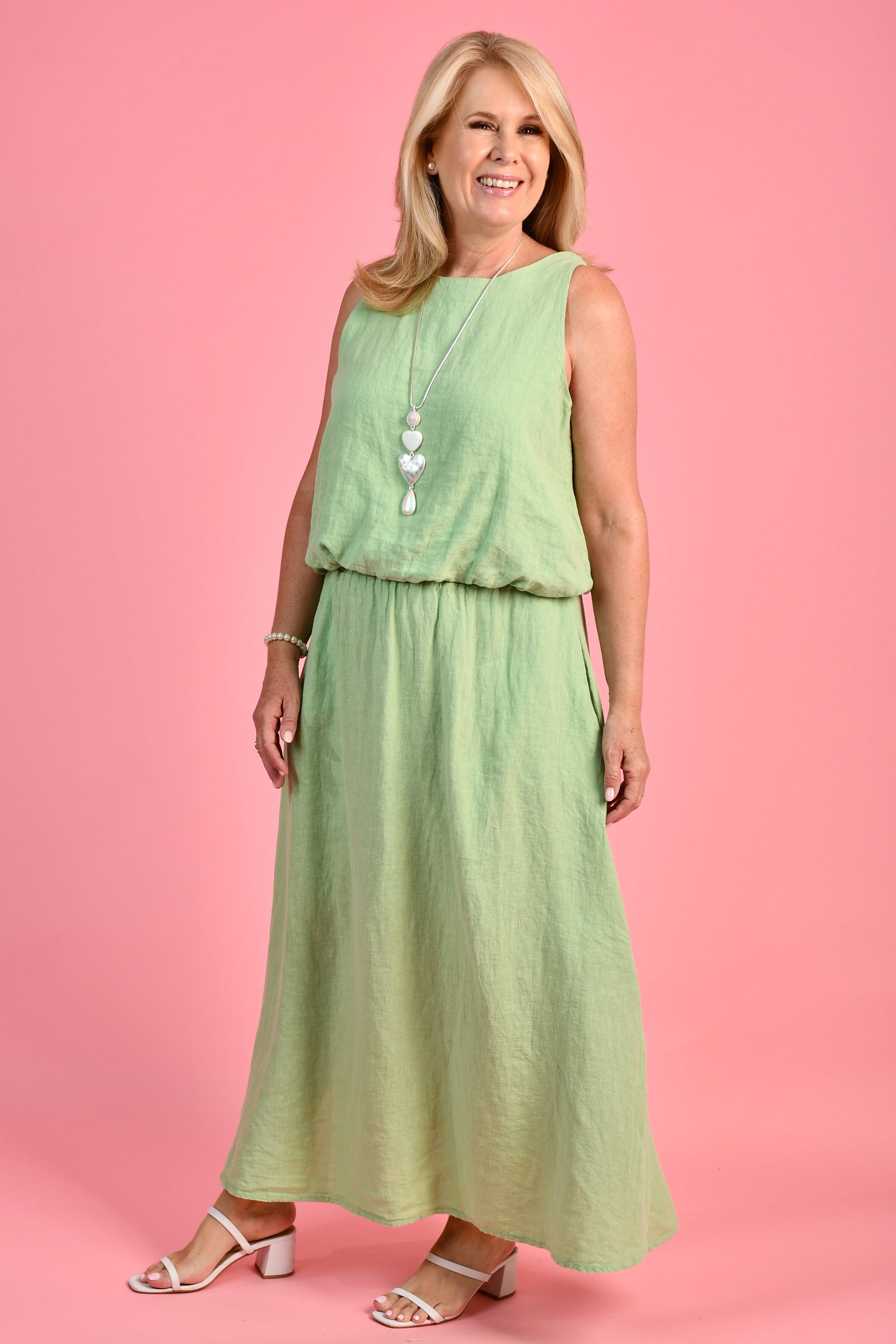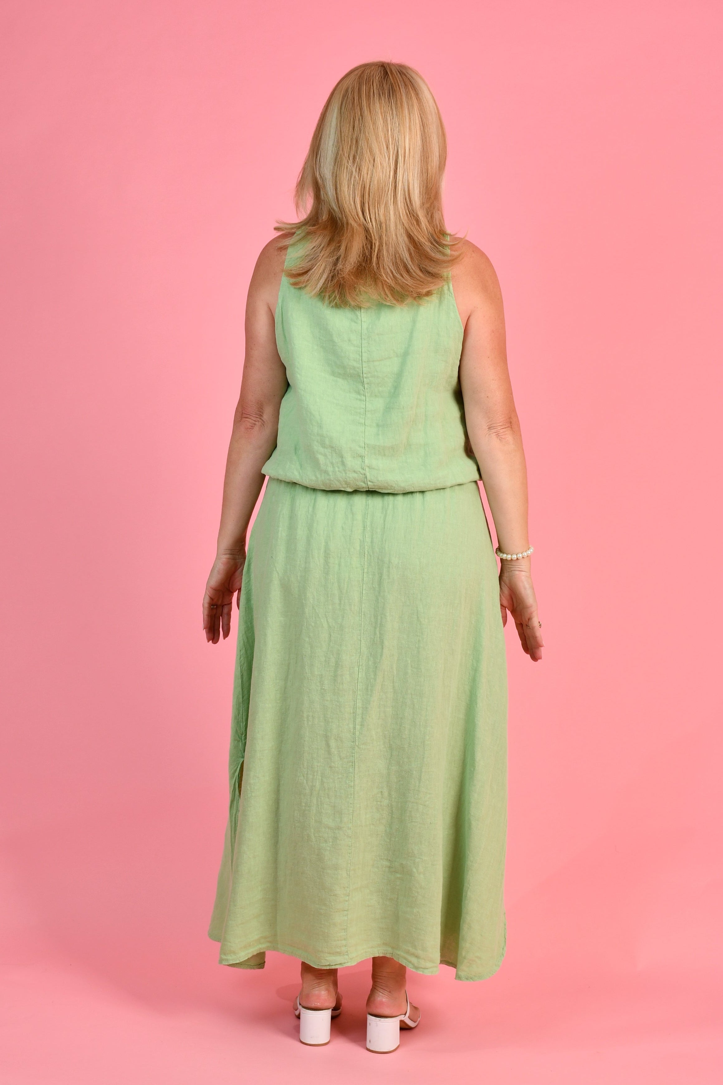VLSK001 (24G109) - MILAN LINEN SKIRT - SPRING GREEN