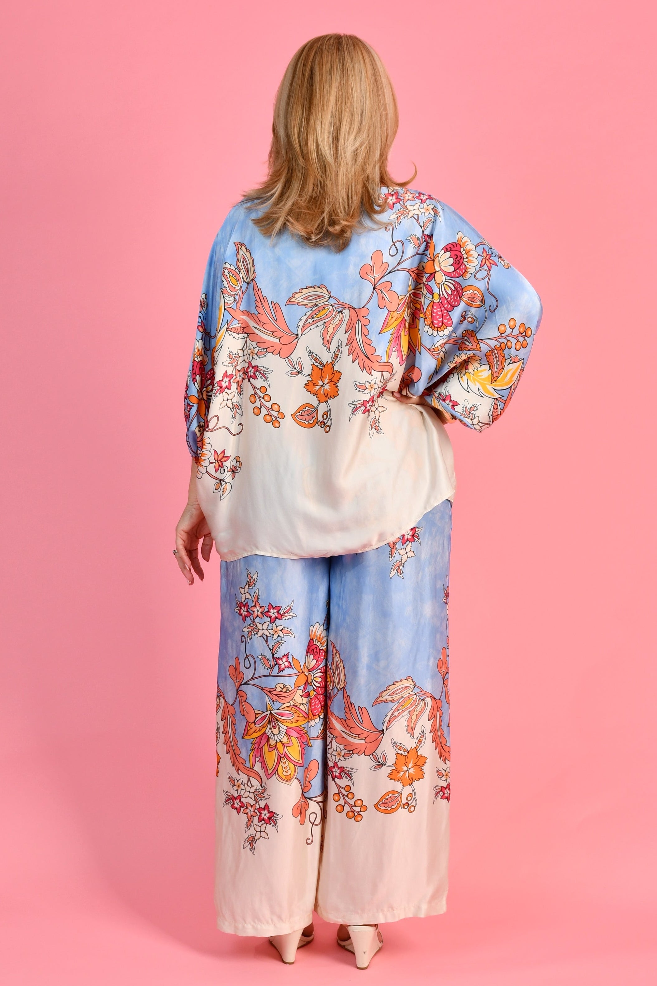 This stunning top is all about relaxed luxury. Made from beautiful Italian silk with a vibrant boho print, it’s perfect for dressy lunch dates, sunset weddings or jetting off somewhere tropical (just like Lisa did).