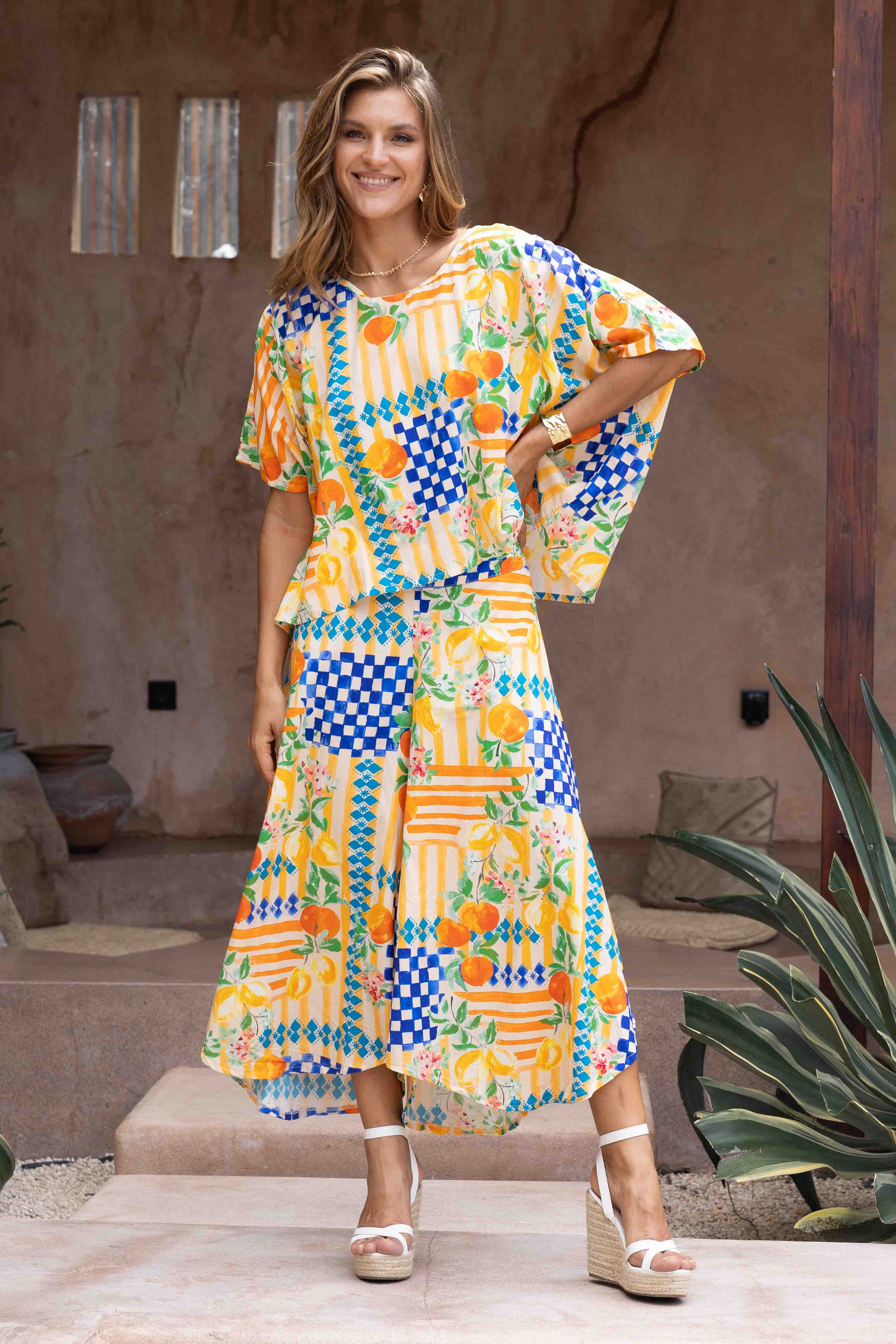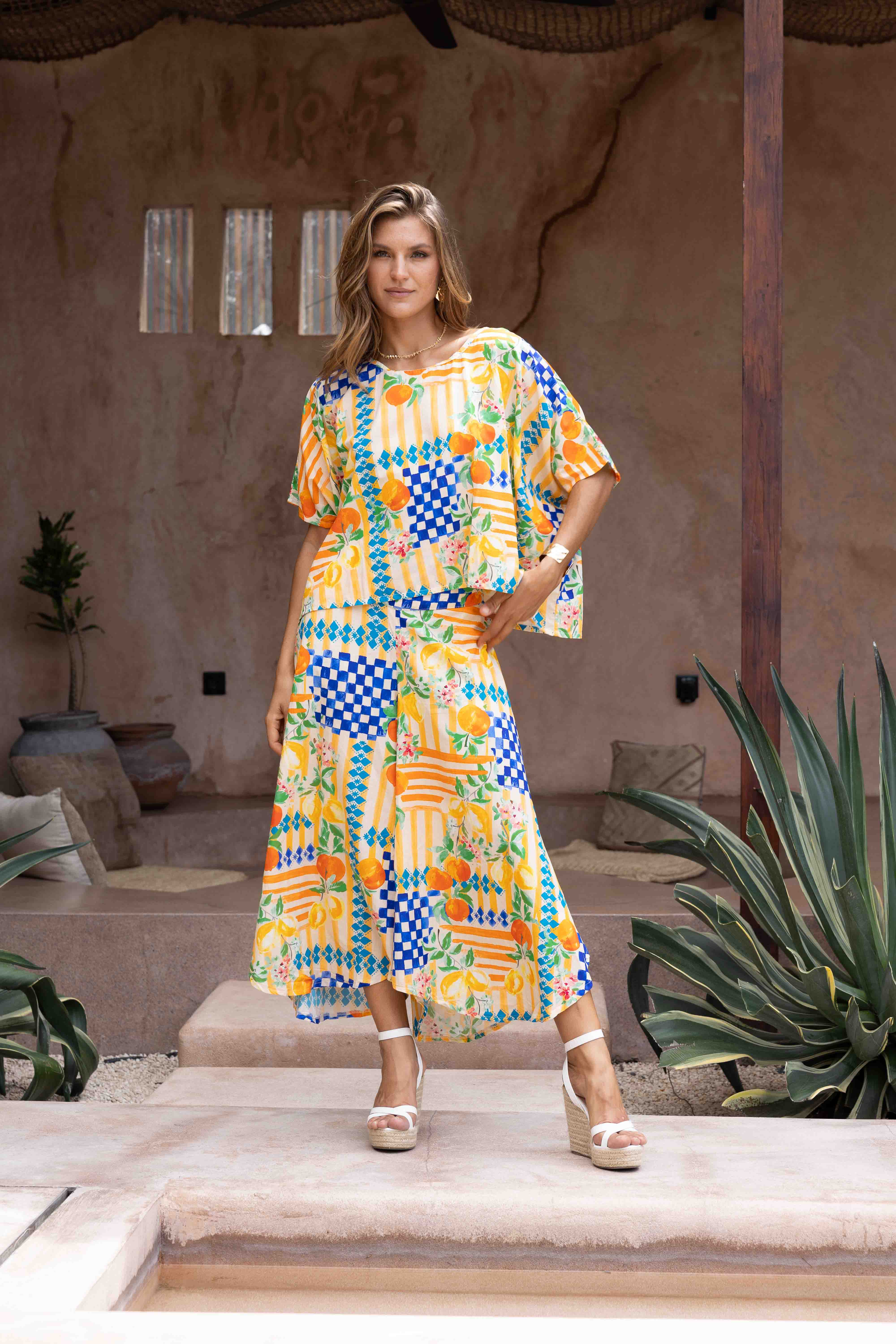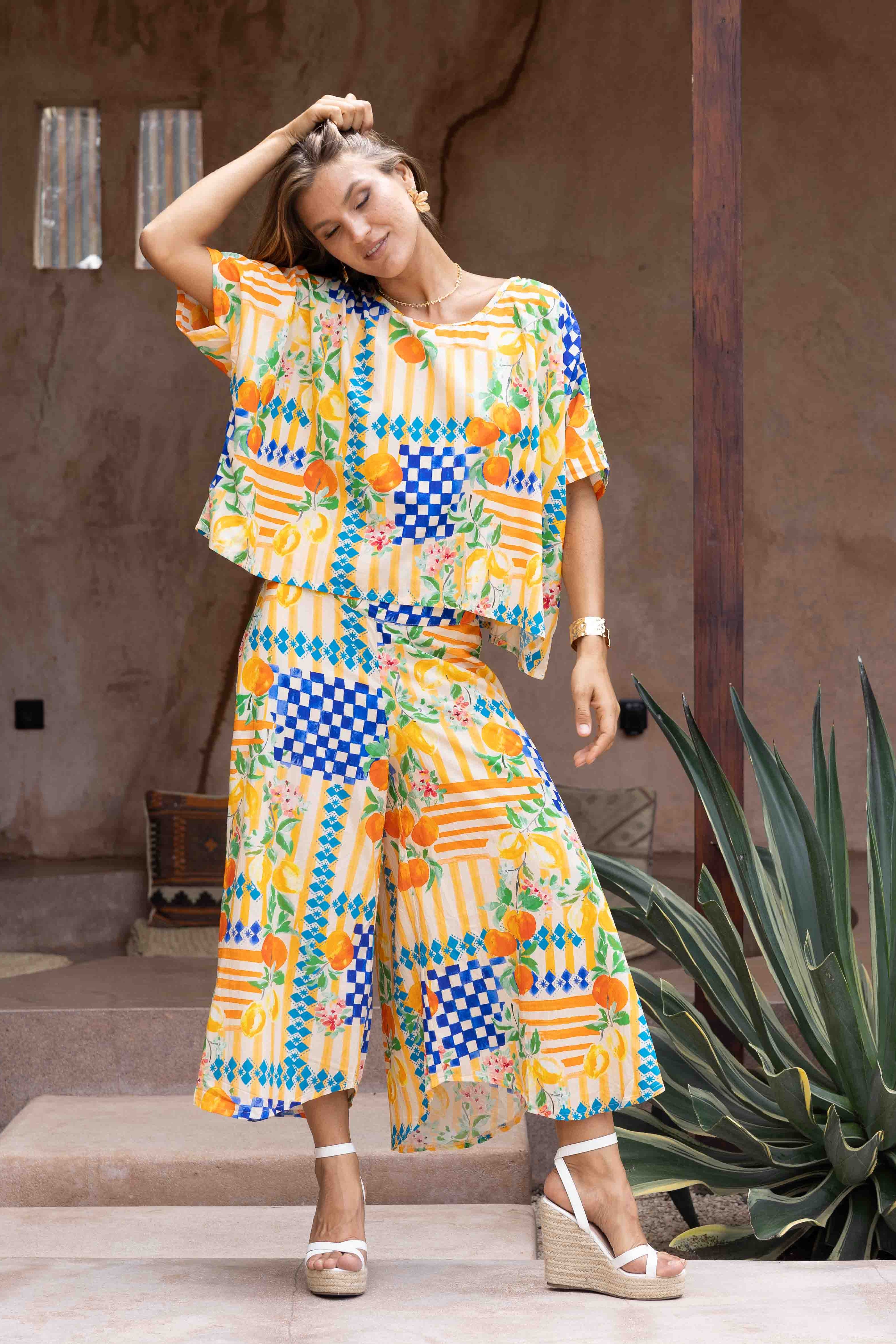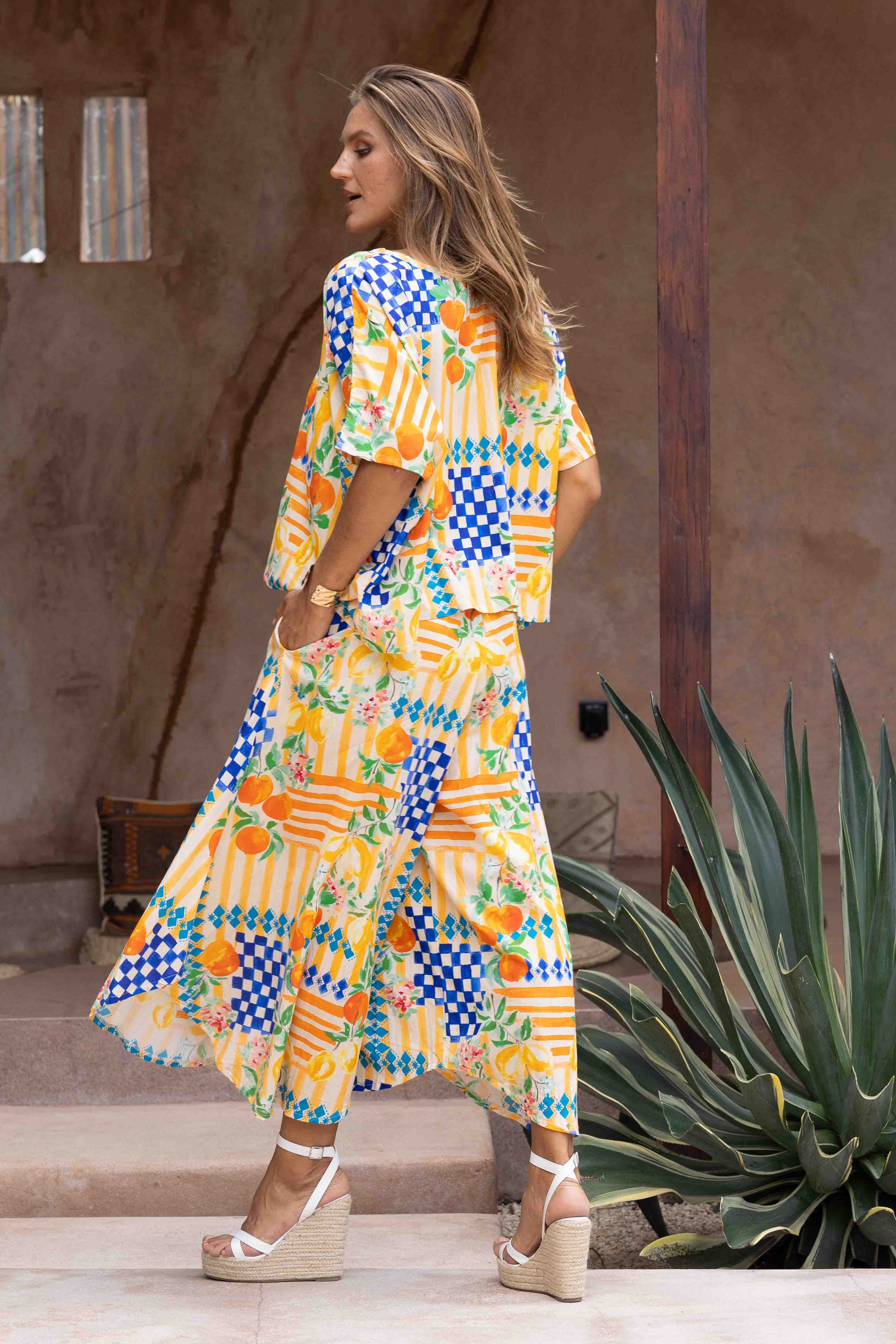 VBLP106 - SYDNEY WIDE LEG PANT - CAPRI CHECK NAVY/ORANGE