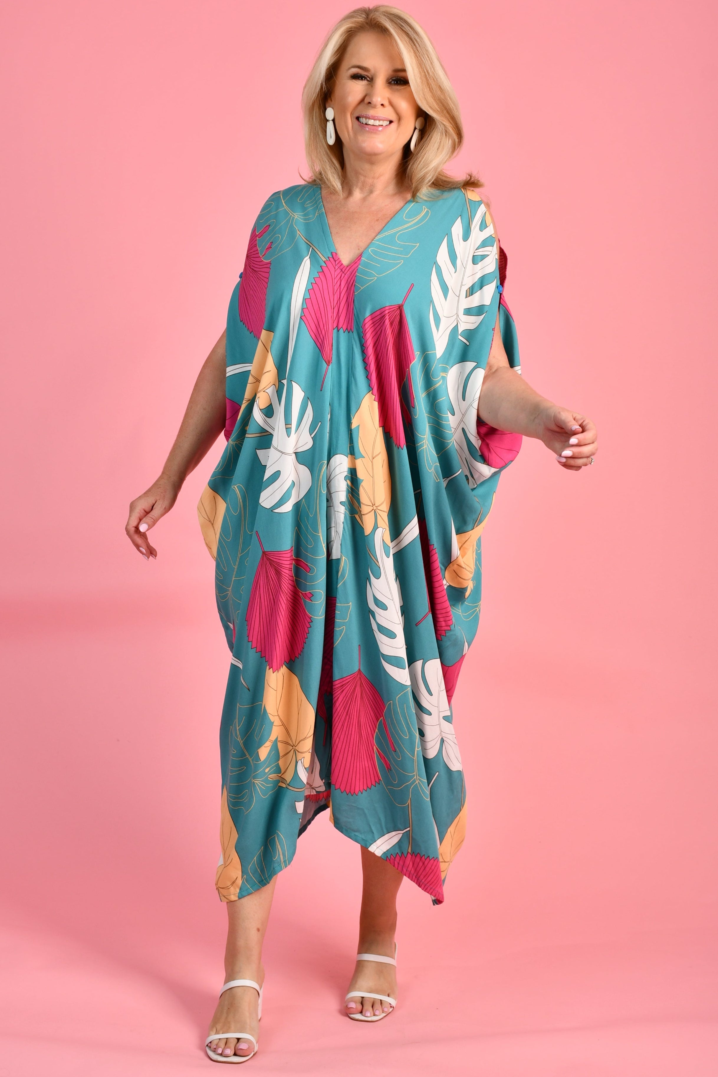 VBLD348 - CUSHLA DRESS - MAGIC MONSTERA TEAL
