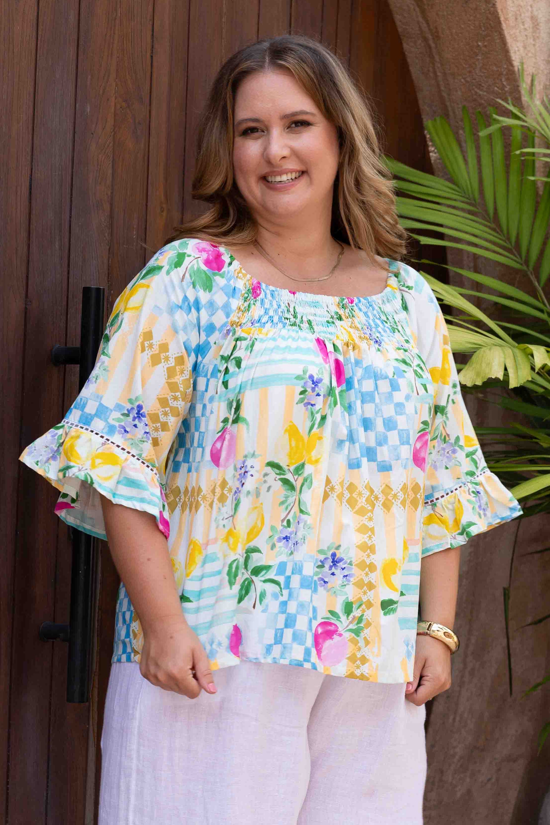 Our Rouched Bell sleeve top By Bodacious is not your average blouse! It ticks all the boxes being super comfy, & a generous relaxed fit. It features relaxed fitting bell sleeves & this style may be worn off the shoulder or on the shoulder depending on what feels best for you, both ways look amazing!