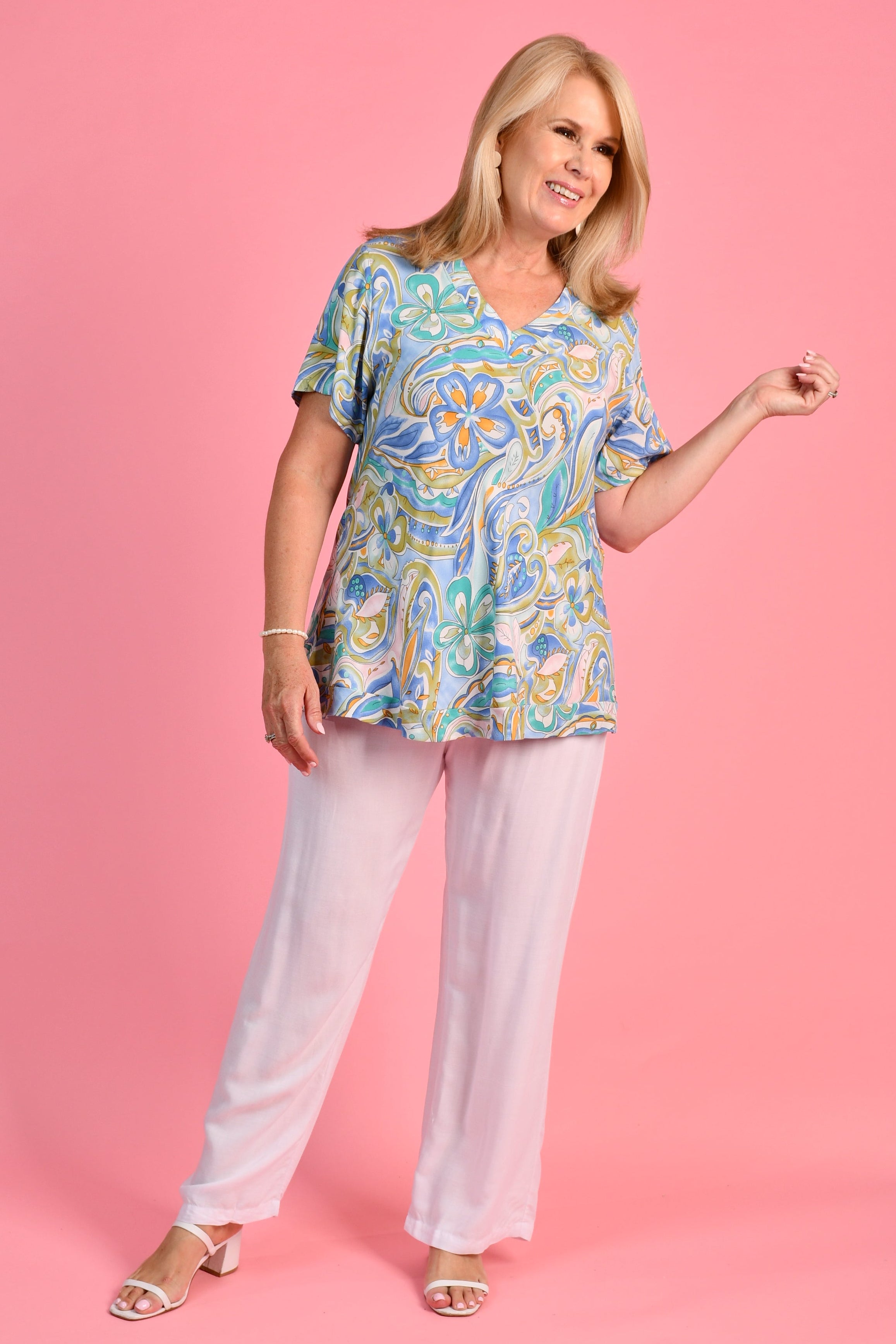 VBLT290 - LARA TOP - 70'S SWIRL BLUE