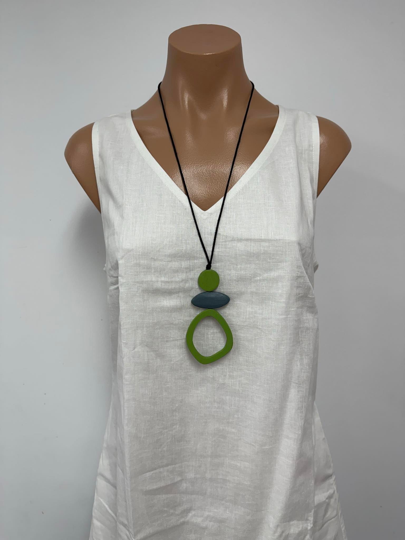 VGA777 - LONG WOODEN NECKLACE - GREEN/GREY