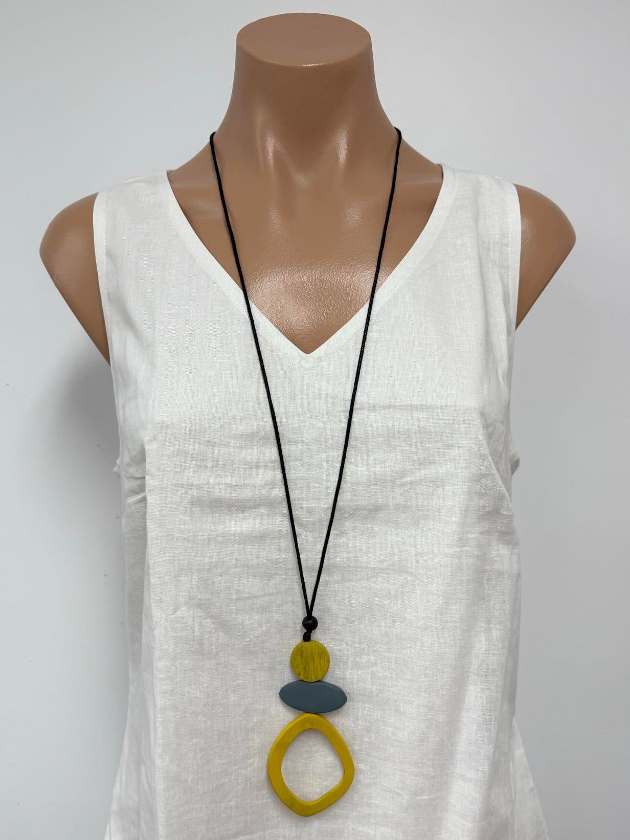 VGA777 - LONG WOODEN NECKLACE - YELLOW/GREY