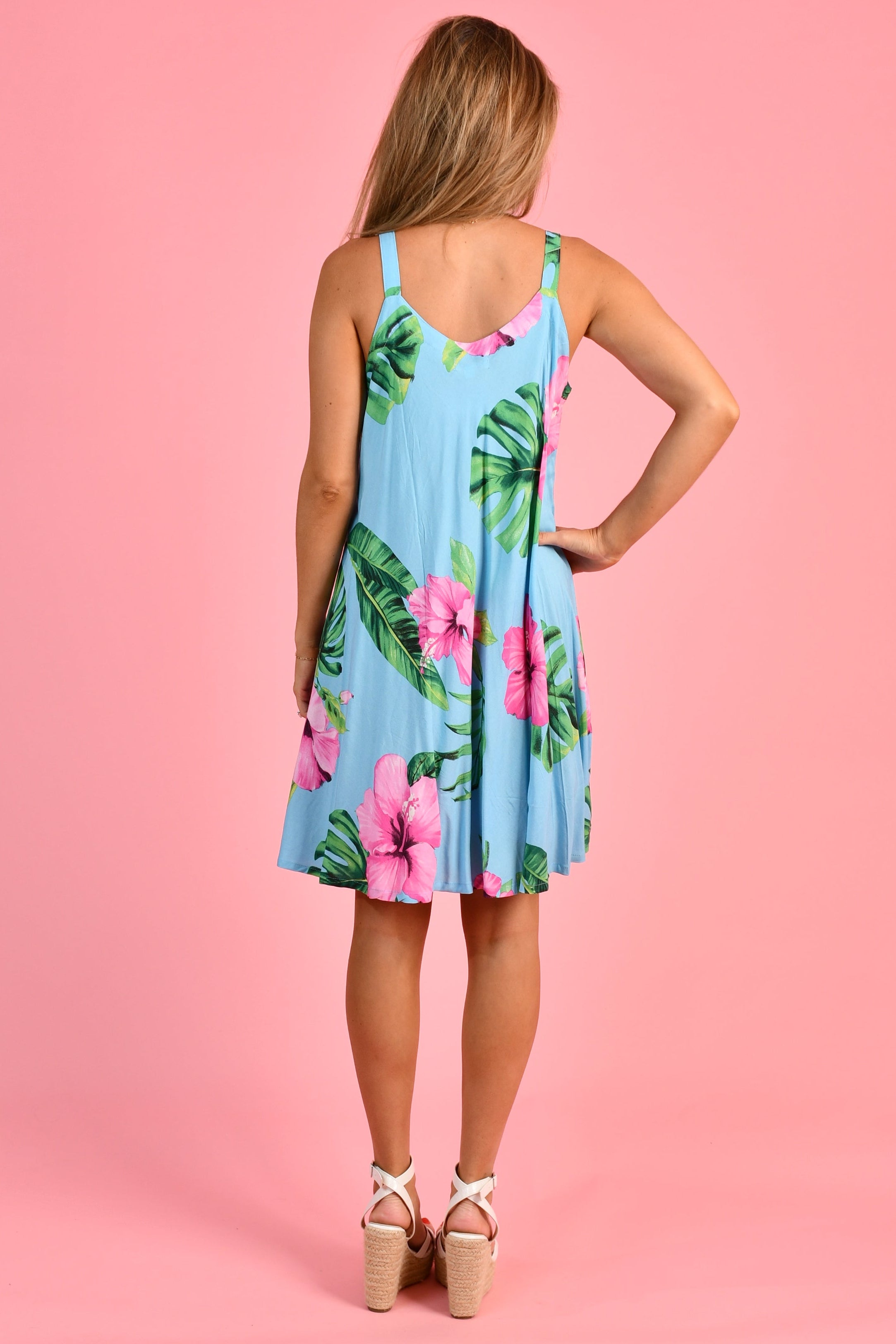 VGLD086 - MARGOT WIDE STRAP DRESS - PARADISE PETALS BLUE