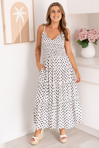 VGLD267 - TRAVELLER MAXI DRESS - POLKA DOT BLACK/WHITE