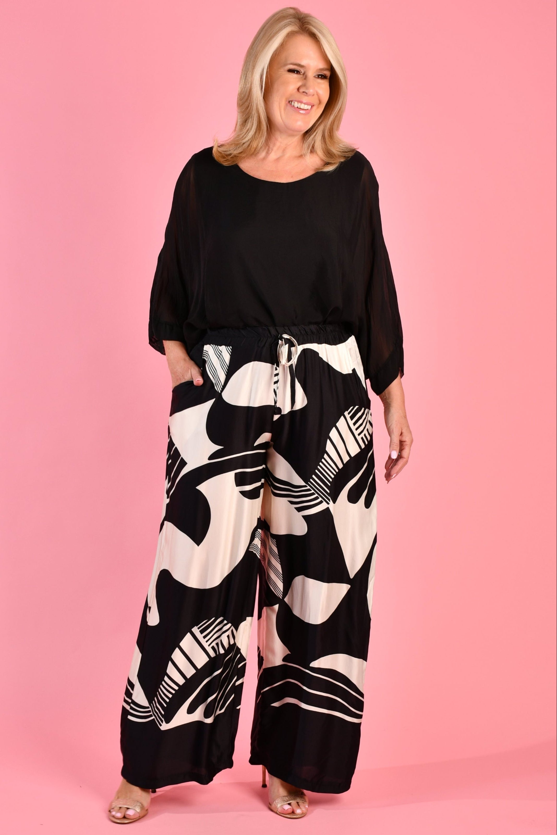 VLSP700 (6655) - DREAMER SILK PANTS - BLACK/CREAM