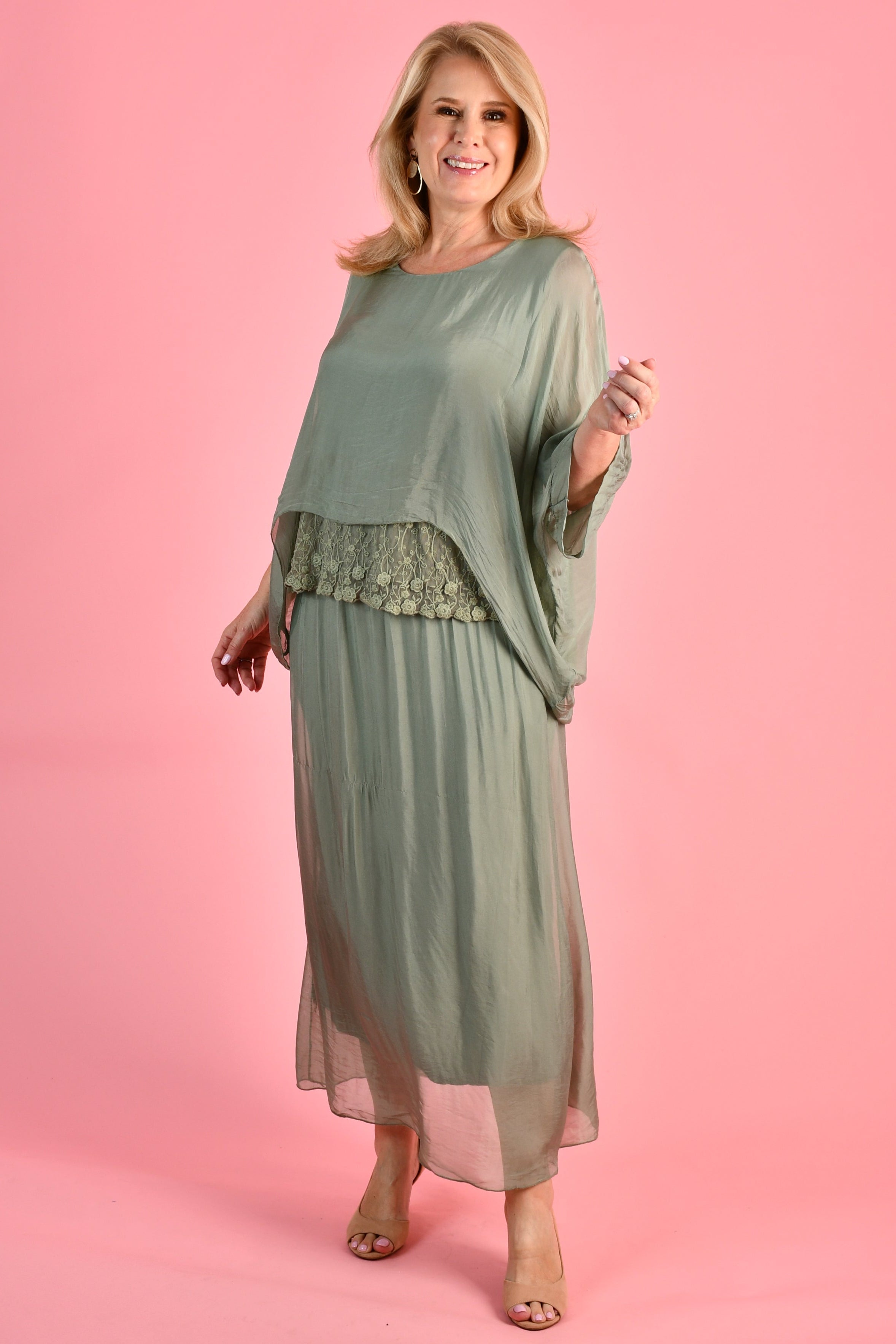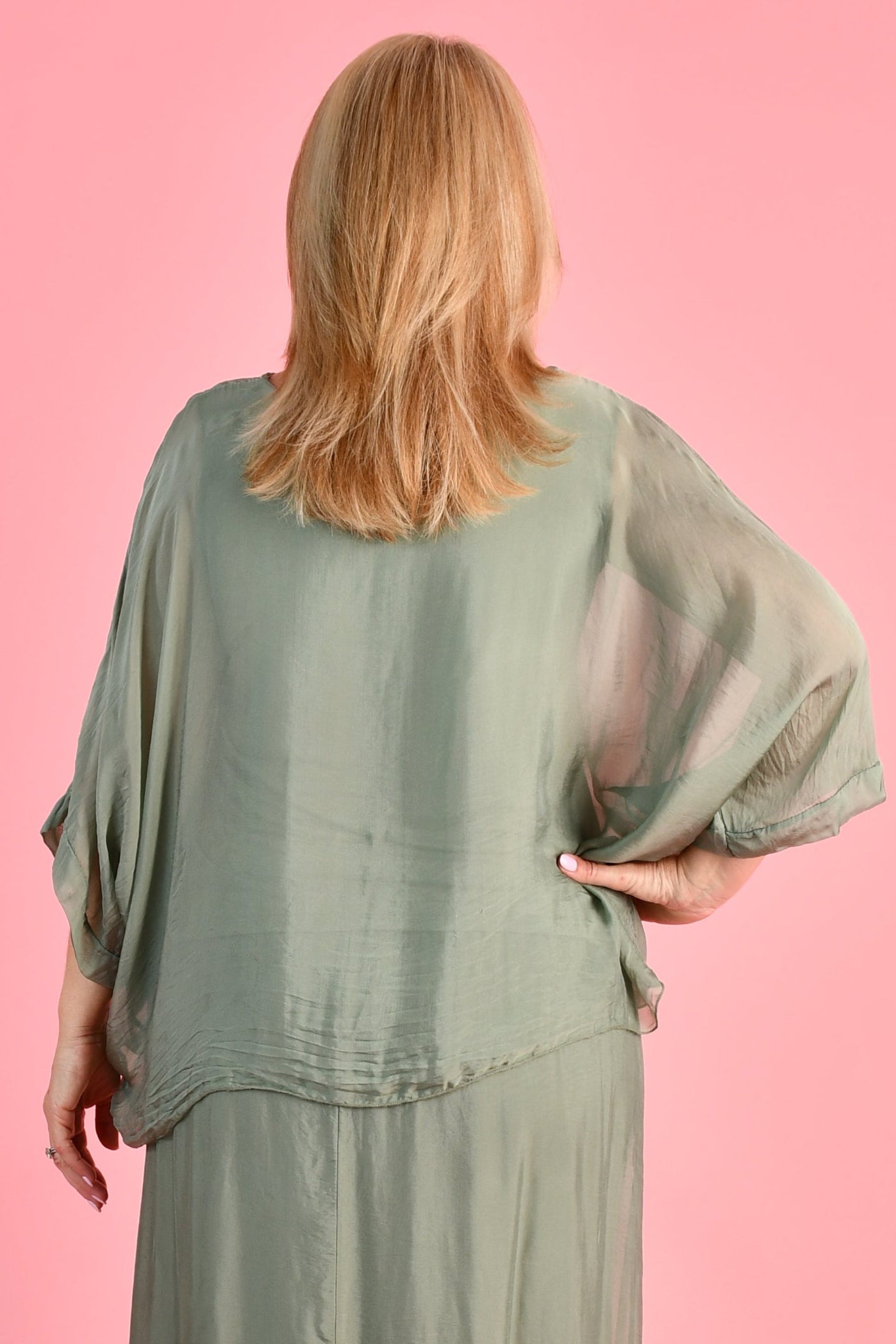 VLST540 (24032) - MARTA SILK TOP W/SLIP - SAGE