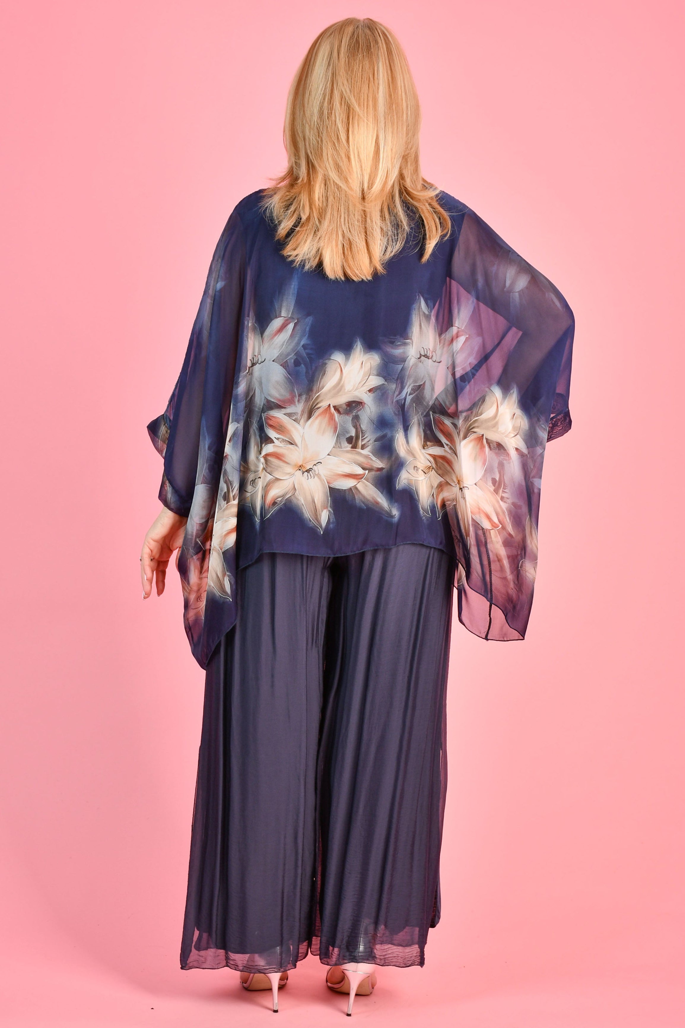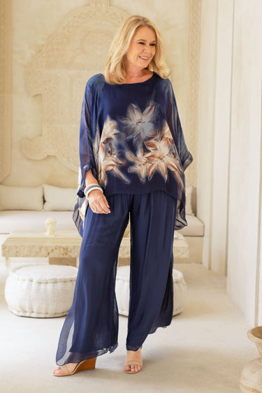 VLST722 (1003) - GABRIELLA BATWING SILK TOP - NAVY LILY